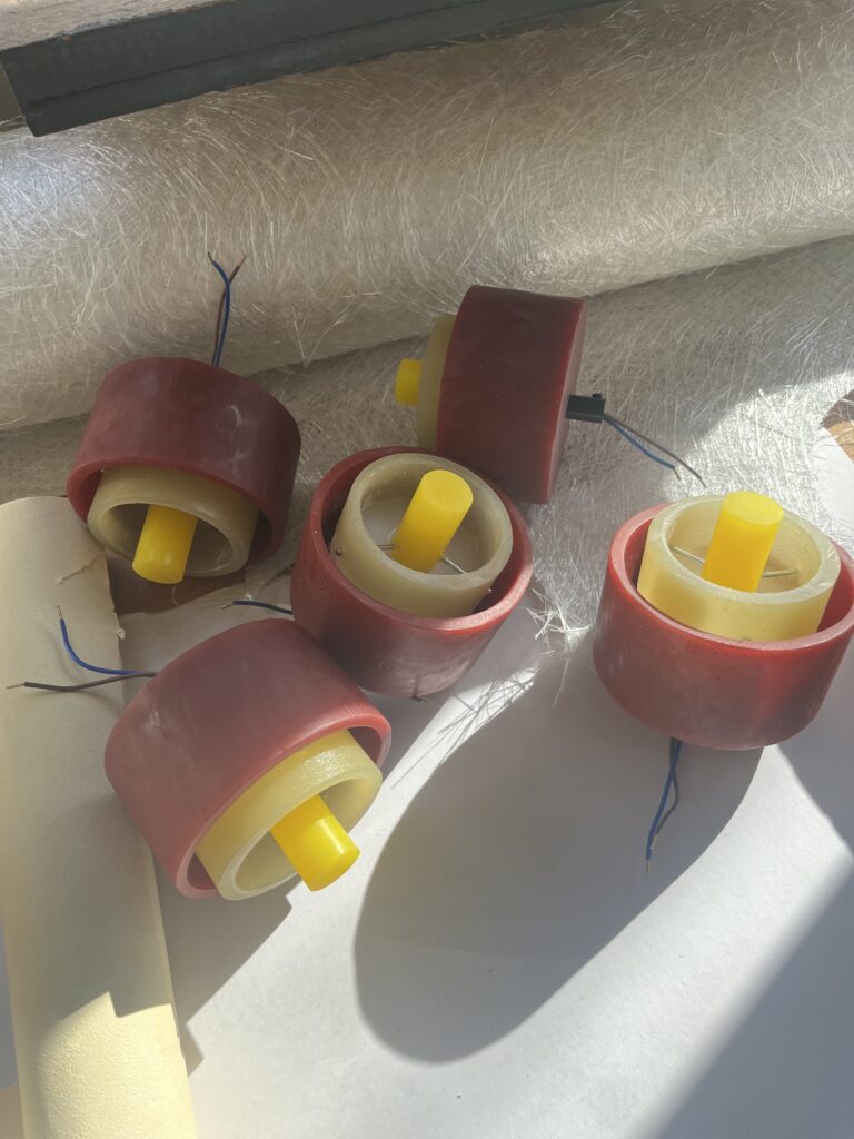 Er hangen 2 type lampen. beiden gegoten in een hars.